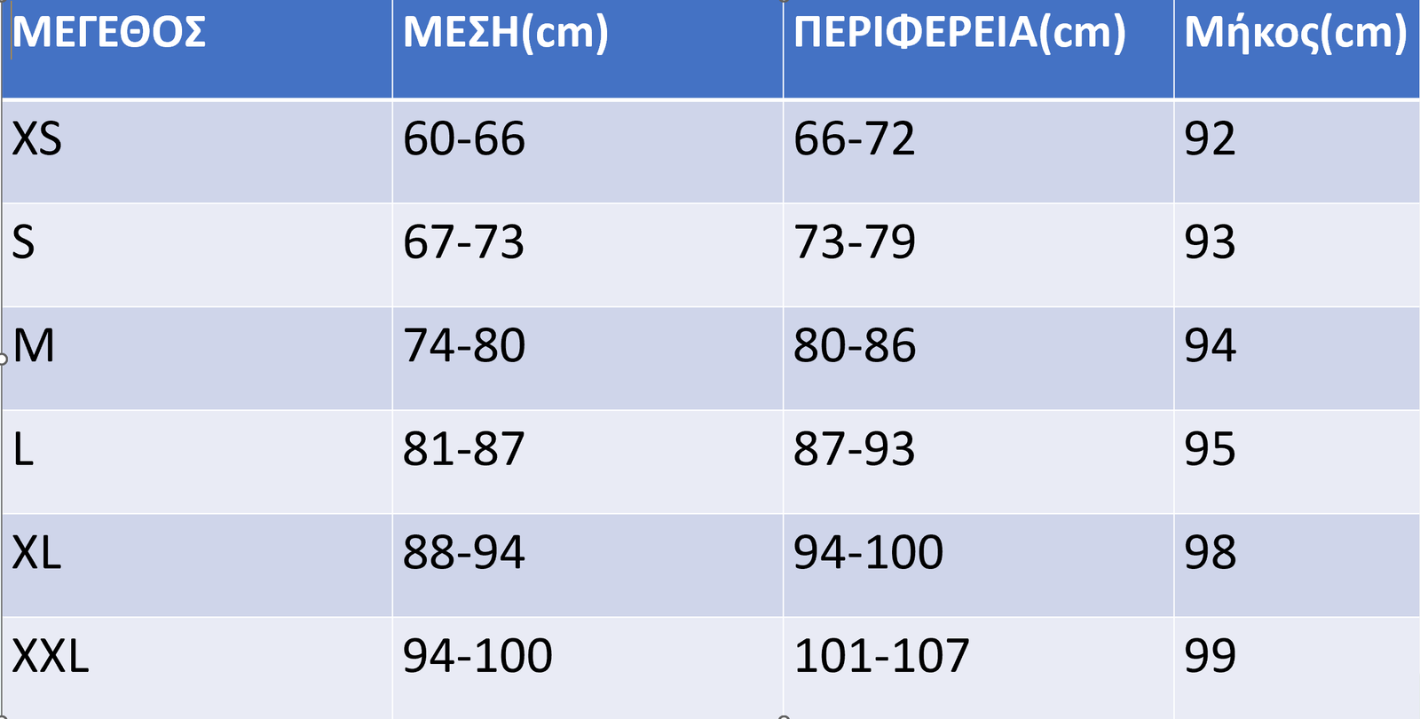 Βρείτε το μέγεθος σας από τον πίνακα αριστερά!